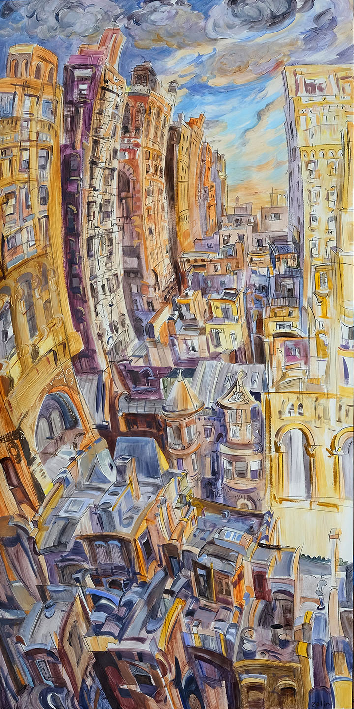 Zolin has explored many corners of the City, from the UWS to the LES and beyond. He is always finding and creating new architectural views as he bends space, treating the assemblages of buildings as a giant outdoor sculpture that’s always moving.